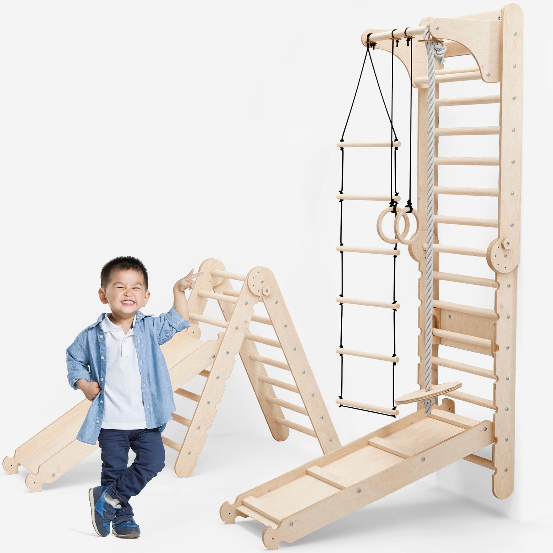 6-in-1 お子様向けスウェーデンラダー (ピクラートライアングル・滑り台・ブランコ・お絵描きボード)