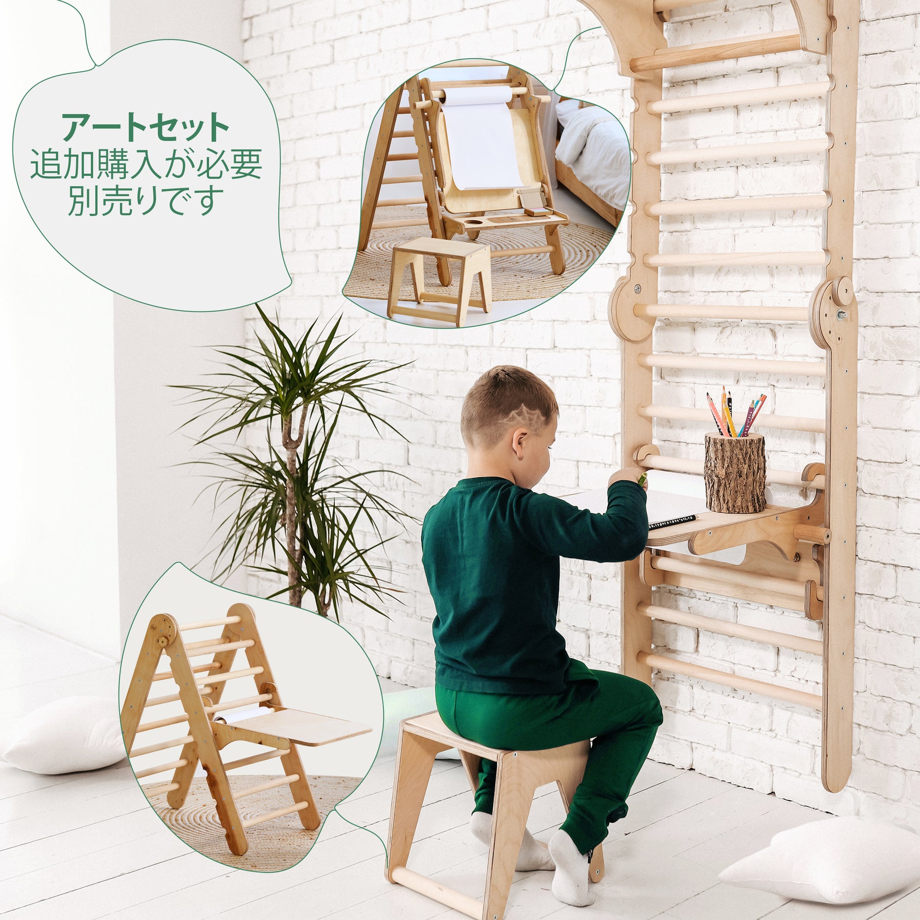 • 6-in-1 お子様向けスウェーデンラダー (ピクラートライアングル・滑り台・ブランコ・お絵描きボード) スウェーデンラダー