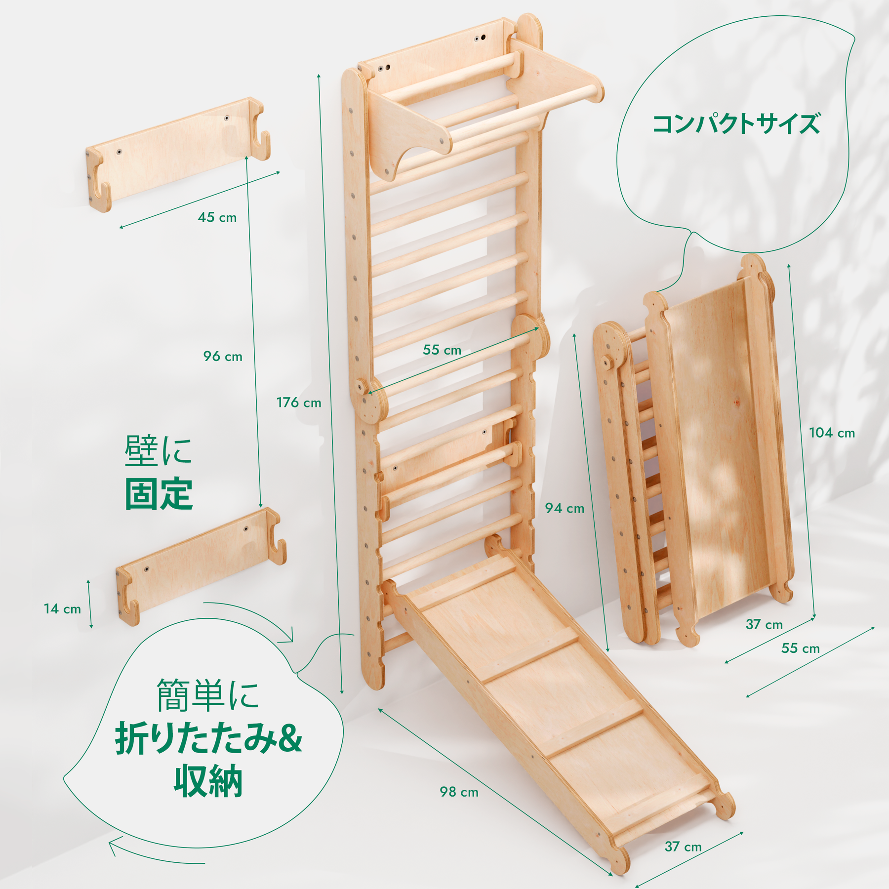 スウェーデンラダー・滑り台・3-in-1 ジムセットで、お子様がのびのびと遊べる最高の屋内アドベンチャーへの扉が開きます。体や心の成長を育みながら、何時間も夢中で遊べます。わくわくの冒険を、今から始めてみませんか?