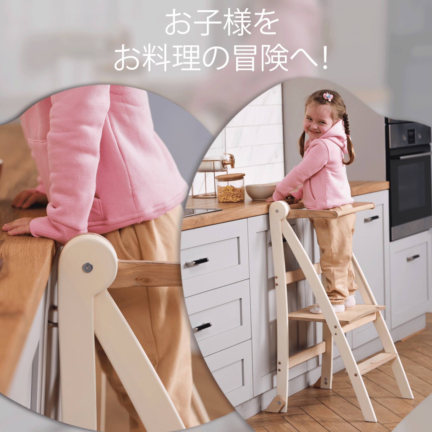 自信をもって探検し、学び、成長できるようサポートします。生地をこねたり、切ったり注いだり、歯磨きや食器洗いまで――折りたたみ式のラーニングタワーで日常の作業が楽しい学びに変わります。
