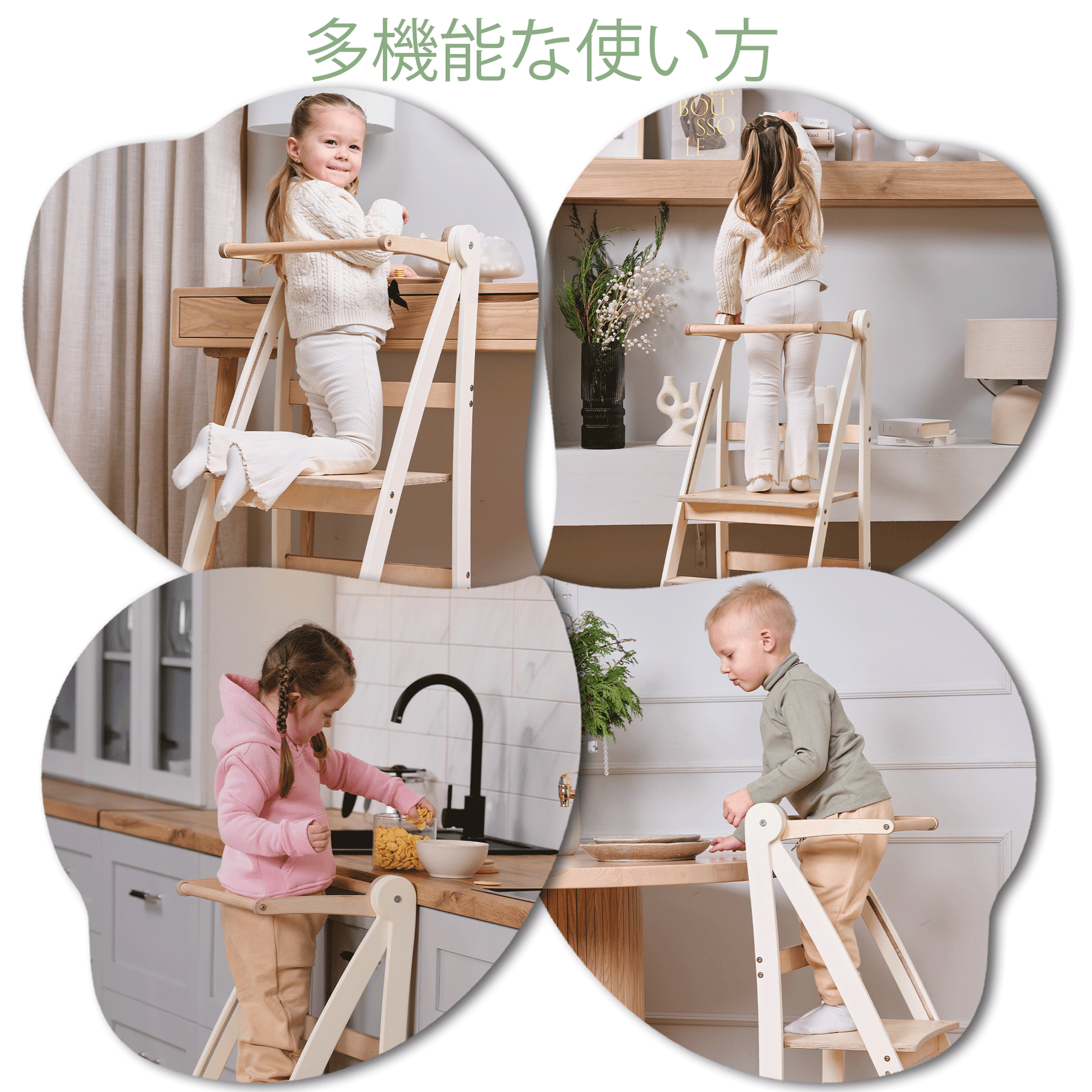 多機能でスタイリッシュなこの幼児向けタワーは、お子様の好奇心を促進してくれます。お子様もご家族の時間を一緒に楽しめます。成長にぴったりのチェアだけでなく、お子様の想像力も広げてくれます。