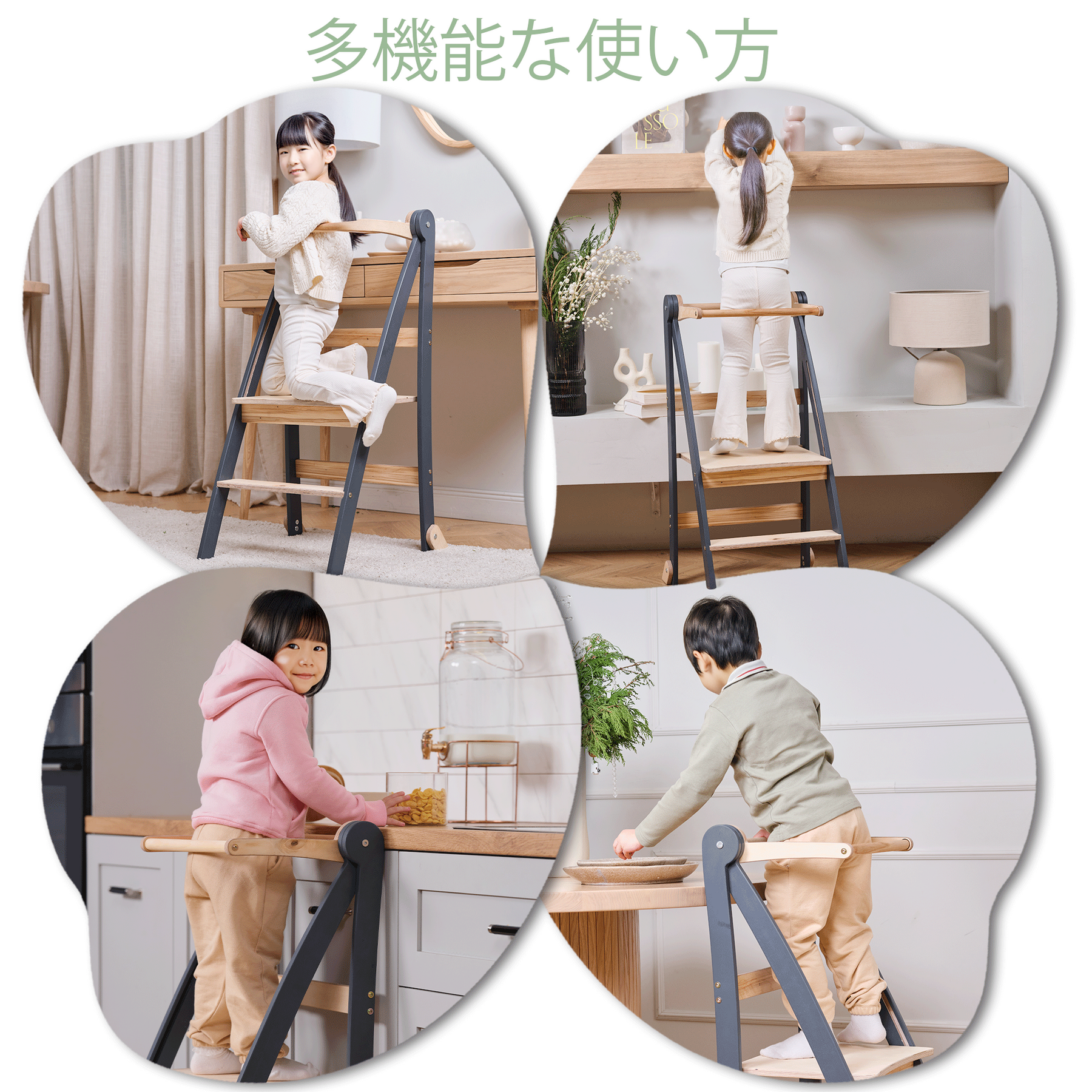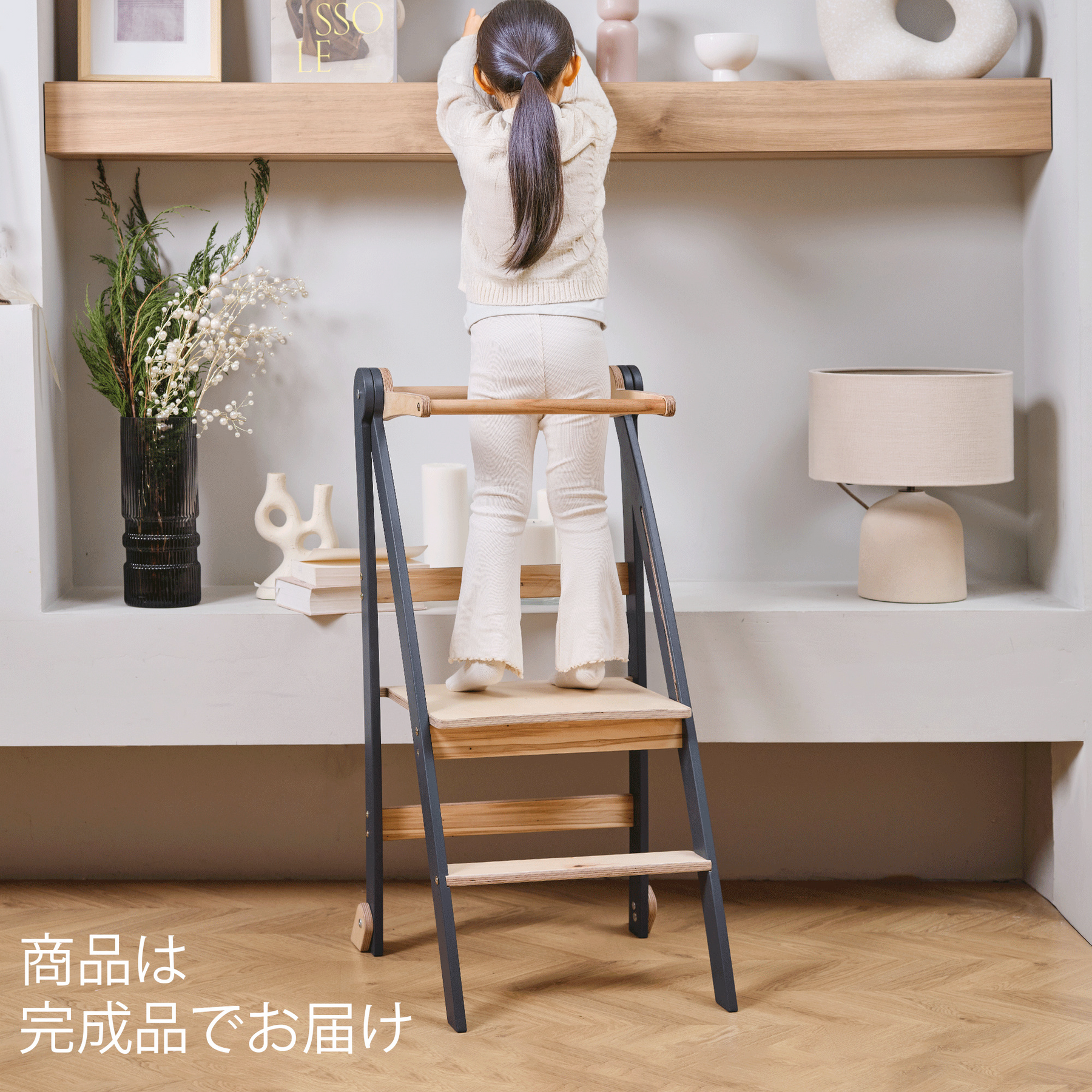 忙しい保護者の方と、元気いっぱいの小さな探検家におすすめです。折りたたみ式で便利なステップスツールは、使いやすさと実用性を兼ね備えています。スペースが必要なときも、さっと準備したいときも、スマートな設計で収納も使用もらくらくです。